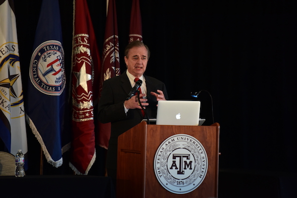 The second day of the Annual Meeting provided plenty of star power, beginning with the System’s super deans. Vice Chancellor and Dean of Engineering M. Katherine Banks joined Vice Chancellor for Health Sciences and Dean of Medicine Carrie Byington and Dr. Patrick Stover, the incoming vice chancellor and dean for agriculture and life sciences, for a panel discussion about their initiatives and visions for the System. Mark Stone, the System’s chief information officer, also spoke about cybersecurity and other important topics. In another panel discussion, Texas A&M University leaders President Michael K. Young, Provost Carol A. Fierke and Colonel Fossum from the Galveston Campus provided an in-depth discussion about the flagship’s activities in College Station and elsewhere in Texas.